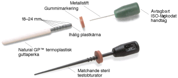 Varje obturator är sterilt förpackad tillsammans med en medföljande testobturator i samma storlek (ISO-färgkodade, stl 20-100). Testobturatorn, med motsvarande diameter som det senast använda rensningsinstrument, används för att precist kontrollera att Soft-Core obturatorn utan motstånd kan placeras hela vägen ner i kanalen. Detta innebär att man får ett standardiserat och förutsägbart system med bra slutresultat varje gång.